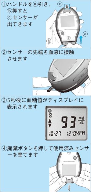 「血糖自己測定」といって,医師の指示によりあなた自身が自宅や職場などで血糖検査を行うことがすすめられています。