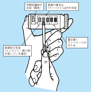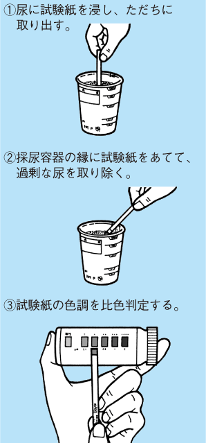 尿糖試験紙で自分の尿を検査することにより,糖尿病のコントロールがうまくいっているかどうかを簡単に知ることができます。