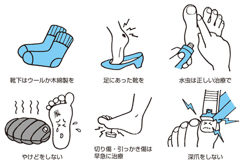 足を不潔にしていたり,傷ができたり,やけどをしたりして,そのままにしておくと,それが原因になって壊疽という病気を起こし,最悪の場合には指や足を切断しなくてはならないこともあります。